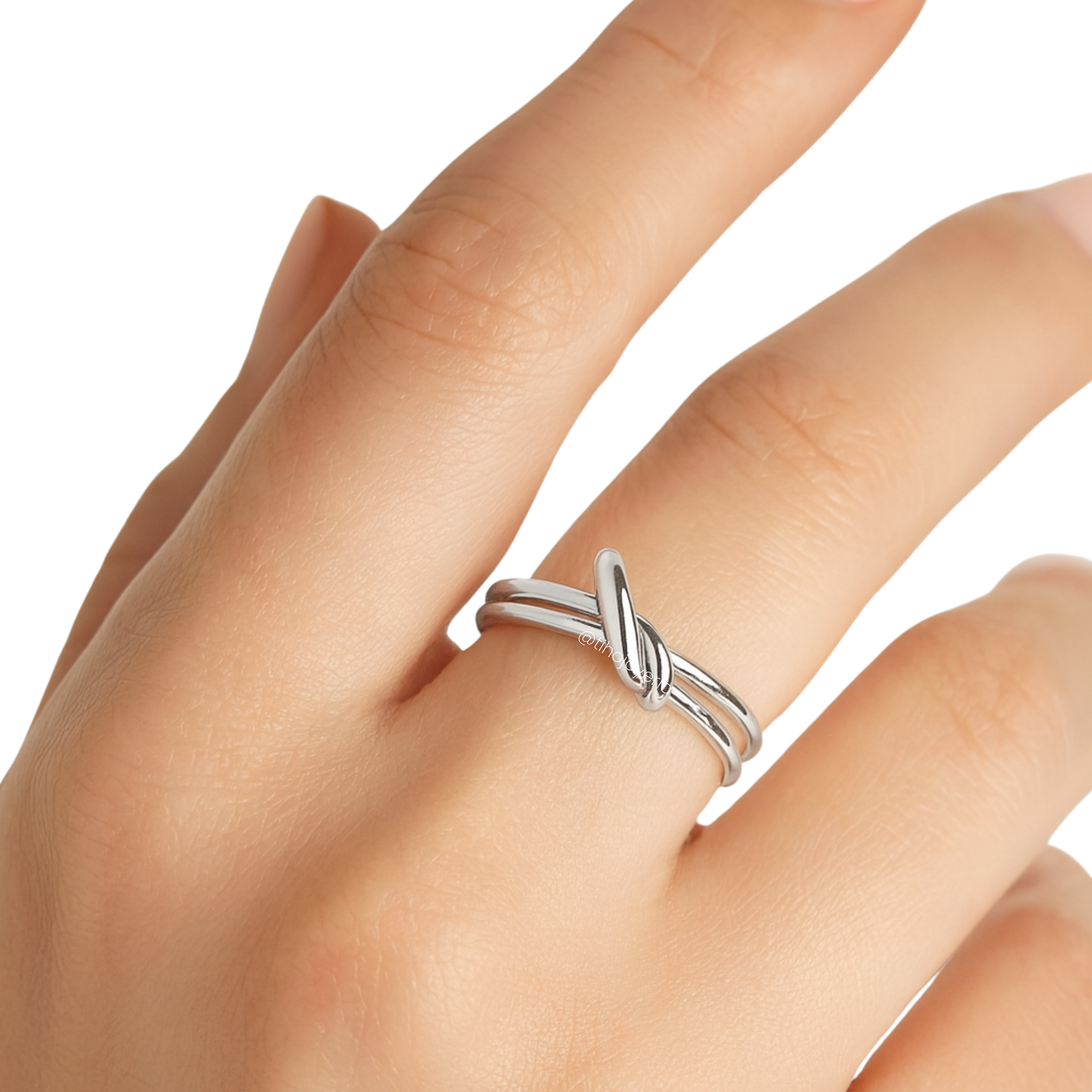 Un clásico moderno que simboliza conexión y fuerza. Su diseño simple y elegante en tono plateado lo convierte en un accesorio versátil que puedes usar todos los días. Va perfecto con looks casuales, como camisas de lino y pantalones de corte relajado, pero también con outfits más formales para un toque sutil y sofisticado. Combínalo con otros anillos finos para un estilo más bohemio o úsalo solo para destacar su diseño limpio.